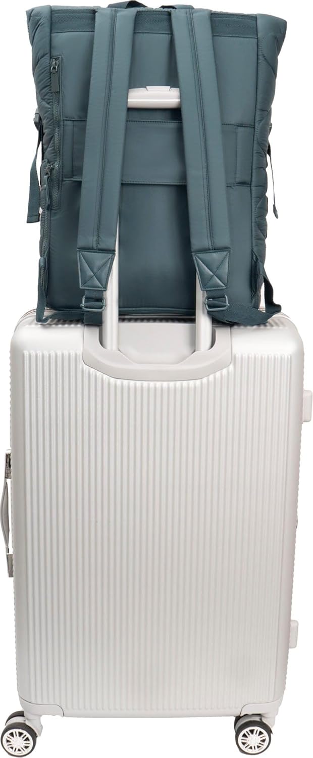 Experience the perfect blend of fashion and practicality with this quilted puffer backpack made from soft, lightweight nylon. Its swirl quilting design adds a sophisticated touch, while durable construction ensures it stands up to everyday use. Inside, you’ll find a spacious compartment with a padded sleeve that fits most 15-inch laptops, along with organizational pockets to keep your essentials neatly arranged. Side bottle pockets provide quick access to drinks or umbrellas, making this an excellent choice for work, college, errands, or travel. A built-in luggage strap allows the backpack to attach securely to rolling suitcases for seamless airport movement. Comfortable adjustable straps ensure all-day wearability, and the included TSA-sized bottles help streamline your packing as you prepare for your next adventure. Whether you're commuting, heading to class, or setting off on a trip, this puffer nylon backpack brings style, comfort, and convenience to every part of your day.